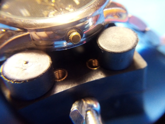Часы были разобраны, интересен корпус этих часов, это полумонокок, то есть часы разбираются не через заднюю крышку, а через лицевую часть. Славу богу, он оказался не полным монококом и не пришлось "городить огород" с большим шприцом или компрессором, что бы "выдуть" стекло.