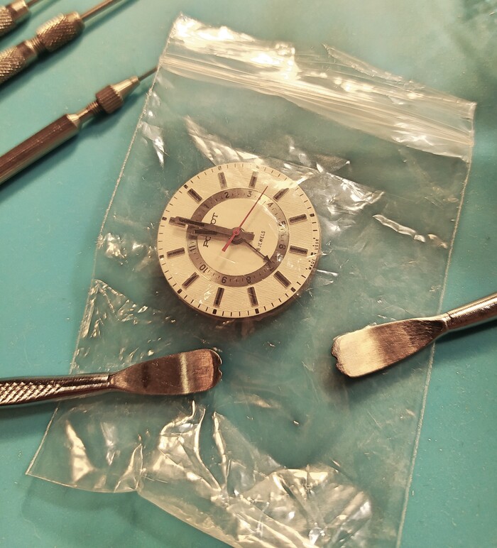 Привет пикабушникам. Прислали мне очень старый циферблатик от часов Молния. Посеребренный. Годов где-то 50-х. Думал, что справлюсь с ним быстро, но все оказалось сложнее.
