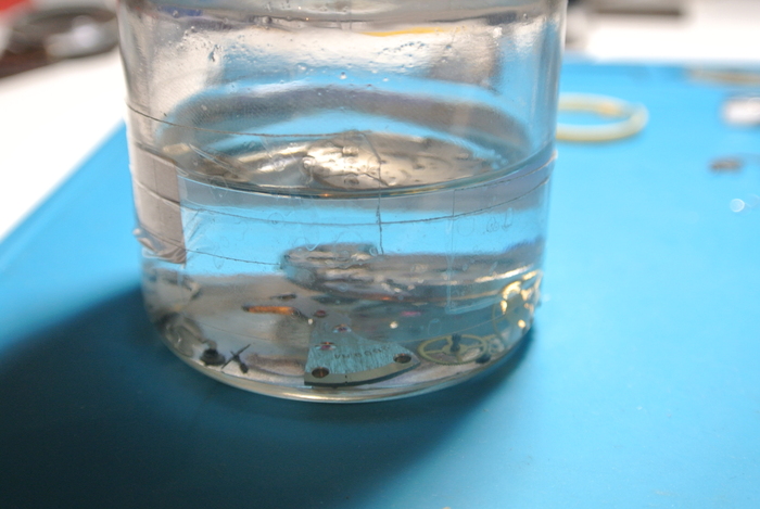 Итак разбираем корпус (включая извлечение стекло) и механизм на промывку. Части корпуса промывать будем в специальном растворе в УЗМ, детали механизмов моем в Бензине-Калоше тоже в УЗМ. УЗМ это ультрозвуковая мойка.