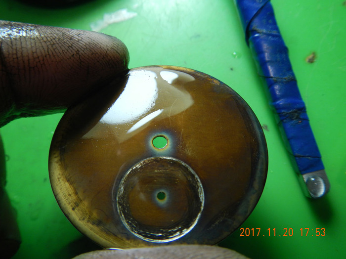 Начал шлифовать и обнаружил советское качество. Два слоя никеля и три слоя меди. Под слоем серебра. Это сделано для того, чтобы цинк, компонент латуни, не корродировал под серебром и чтобы пятна коррозии не смогли пробиться через 5 слоев других металлов и вылезали на поверхность серебрянного покрытия. ПЯТЬ СЛОЕВ!!!