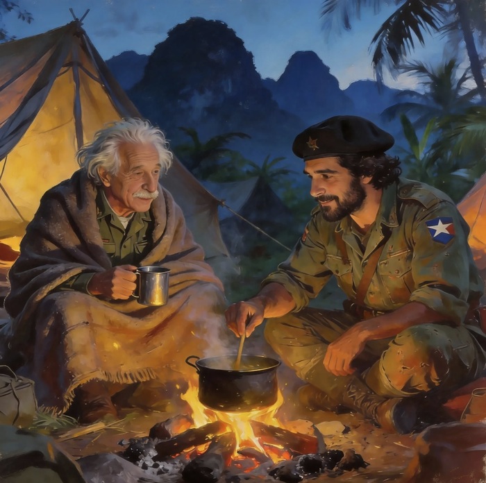 И в эту холодную ночь под кубинскими звёздами простой суп стал для одного проснувшегося солдата важнее любого пламенного митинга. Он стал доказательством того, что за высокими идеями равенства и свободы стоят не абстракции, а люди, которые могут разделить с тобой последнюю краюху хлеба. Или чашку горячего бульона. Этого солдата звали Альберт Эйнштейн...