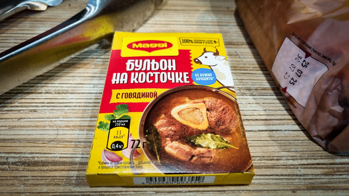После того как сняли пену, можно посолить (2 чайные ложки соли), добавить пару щепоток молотого чёрного перца и, по желанию, для большей наваристости, кубик говяжьего бульона.