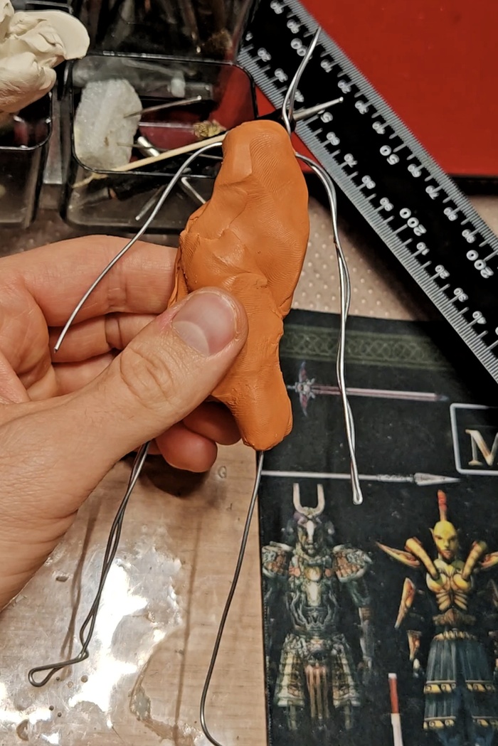 Сначала сделал простенький проволочный каркас и набрал массу
