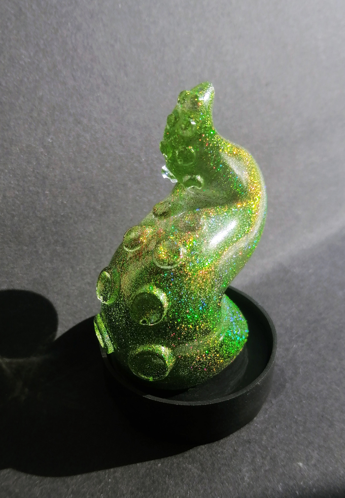 Эпоксидная смола, подставка из пвх. Батарейки легко заменяются, надо просто открутить подставку, они внутри.