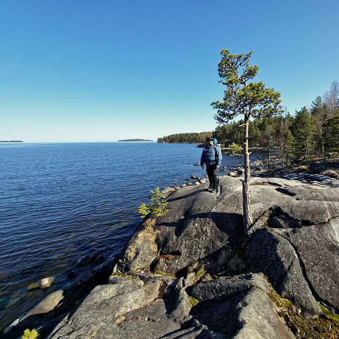 Летом там много водников - на сапах, каяках, лодках, катерах, яхтах, встречаются даже крупные корабли. А от ближайшей базы можно даже заказать доставку себя на катере в любое место берега и даже на острова. Но я всегда хожу ногами, ибо обожаю!
