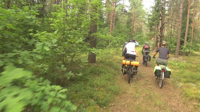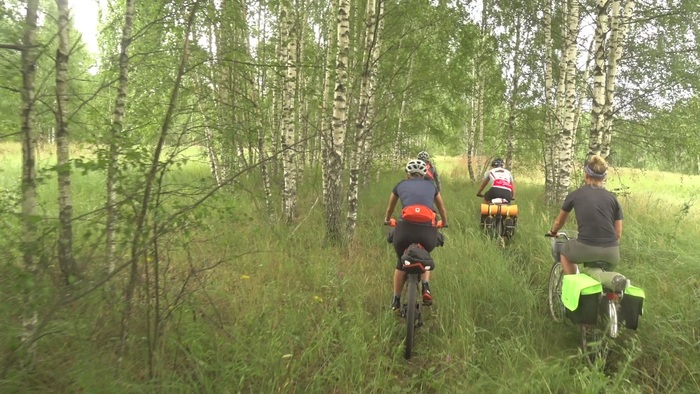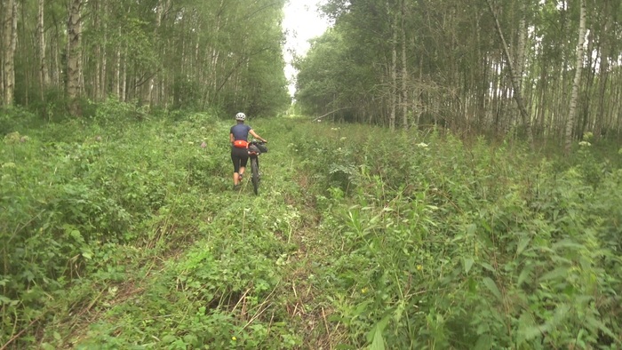 Грунтовка очень долго идёт вдоль железной дороги, рядом лесок, встречный ветер приятно охлаждает. Июльская жара, пахнет какими-то цветами, где-то кто-то стрекочет, с товарняков тонко тянет мазутом и перегретым железом, гудки так и зовут не возвращаться домой.