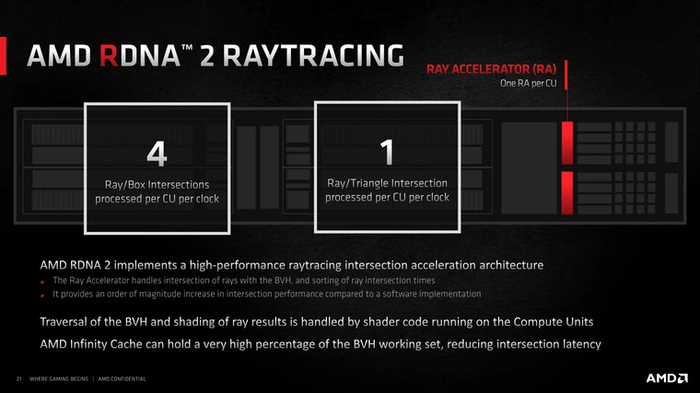 При задействовании трассировки лучей отрыв CU новой архитектуры еще более высокий. Рассмотрим, за счет чего это достигается.