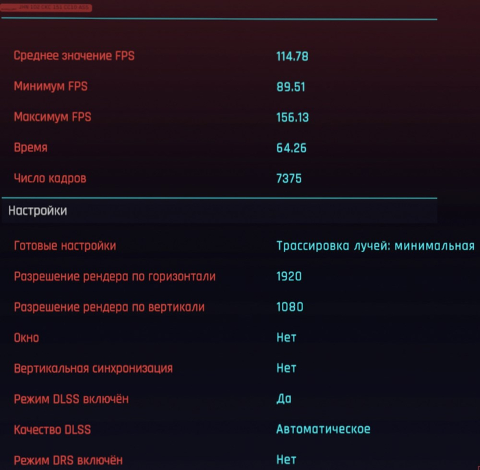 Cyberpunk 2077, FHD, трассировка минимальная, DLSS OFF: