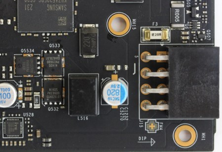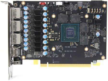 Четыре микросхемы памяти типа GDDR6 распаяны только спереди. Пустых мест нет и в BIOS платы не упоминаются более ёмкие чипы.