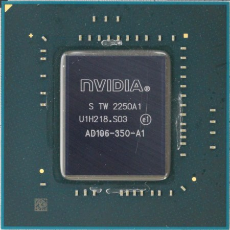 По центру размещен графический процессор NVIDIA AD106-350-A1, он же RTX 4060 Ti. Чип изготовлен на 50-й неделе 2022 года, но в NVIDIA долго думали над конечным продуктом. Это 188 кв. мм выполненных по 5 нм техпроцессу TSMC.