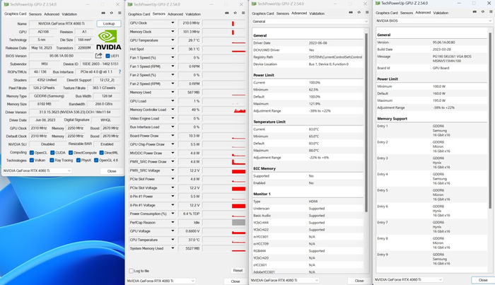 Однако мы видим абсолютно другую картину, и у многих она вызывает недоумение. CUDA ядер стало меньше, шина памяти 128 бит, интерфейс PCI-e x8 – это всё элементы бюджетного решения, но никак не карты среднего уровня. Благодаря этому производительность фактически осталась на уровне RTX 3060 Ti, а стоимость заметно увеличилась.