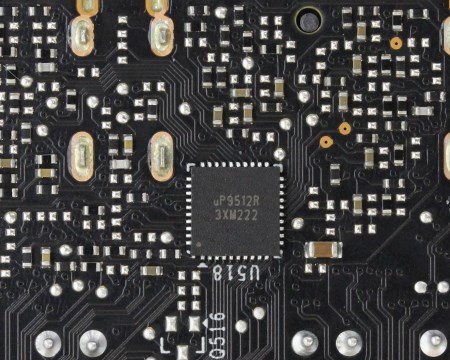ШИМ-контроллер распаяны сзади. Это та же самая микросхема uPI Semi uP9512R.