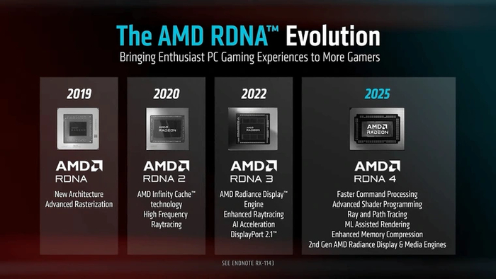 За счет совокупности всех улучшений, заметно повысивших производительность тензорных расчетов, блоки AI Accelerators стало возможным использовать не только для подавления шумов при трассировке, но и для работы нового алгоритма фирменной технологии повышения производительности FSR 4.