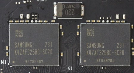 Используются микросхемы производства компании Samsung. Дополнительное питание подаётся на видеокарту через обычный разъём 8-pin PCI-e.
