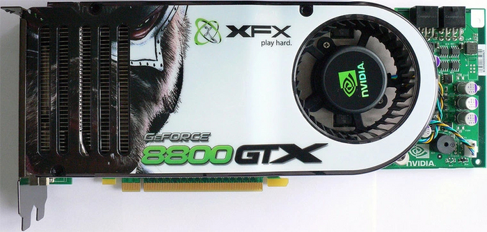 В ноябре 2006 года были выпущены первые видеокарты новой 8000 серии — GeForce 8800GTS и 8800GTX. Их сердцем стал чип G80, первенец новой архитектуры Tesla с поддержкой DirectX 10 и шейдеров версии 4.0.