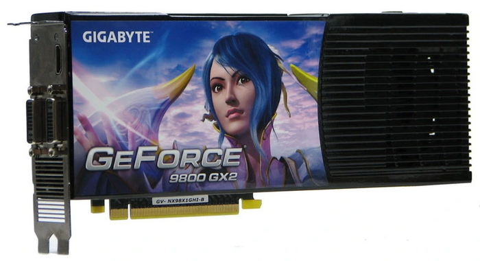 Среди одночиповых решений NVIDIA лидировала, и ей некуда было торопиться. Конкурирующая серия Radeon HD3800 была медленнее, но выпуск двухчиповой 3870X2 в январе 2008 года подорвал позиции лидера. Поэтому в марте была представлена первая двухчиповая карта на архитектуре Tesla — 9800GX2. По сути, модель представляла собой пару объединенных 8800GTS 512 с пониженными частотами. Tепловыделение такого «бутерброда» составило 197 Вт.