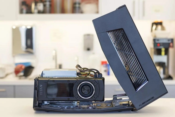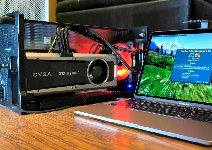 Внешний графический процессор для ноутбука — это обычная десктопная видеокарта, помещенная в специальную док-станцию. Станция обладает собственным блоком питания для подключения к розетке. К ноутбуку такие устройства подключается посредством Thunderbolt 3 — специального интерфейса с высокой пропускной способностью. Понятное дело, внешний графический процессор лишает ноутбук портативности.