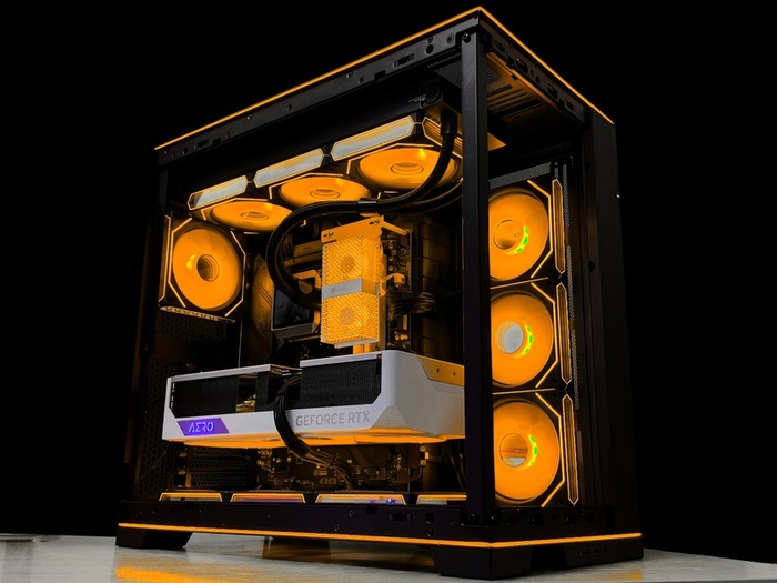 Визуально, конечно, данный компьютер выглядит как феерия, как новогодняя ёлка, которая сияет ещё ярче, чем прежде, ведь мы ещё дети лет 10, на дворе 31 декабря, на часах 23:50, а мы в предвкушении, что же нам подарят наши мама с папой. Но самое важное - это то, что система, представленная на вашем экране, является морозильной камерой, ведь здесь установлено 15, ПЯТНАДЦАТЬ ВЕНТИЛЯТОРОВ, призванных поддерживать не только минимальные температуры, но и низкий уровень шума!