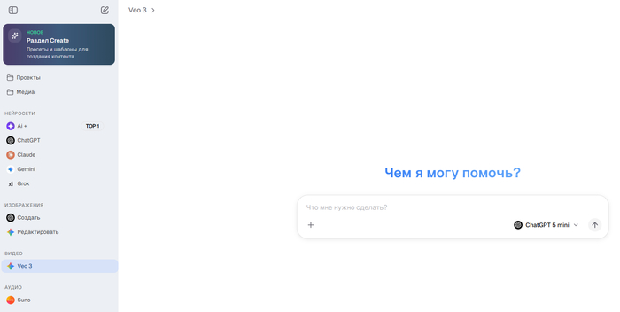 Подходит для: генерации идей, сценариев, озвучки, видео‑контента, анализа материалов, создания изображений и текстов