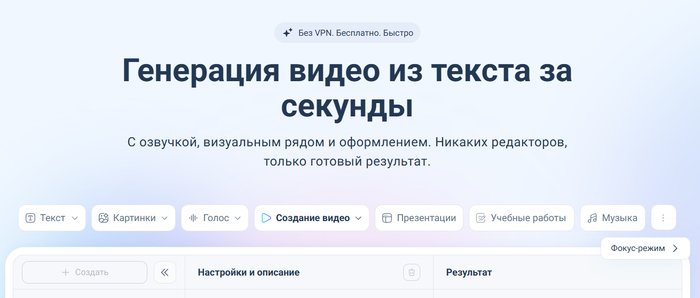 Сервис предлагает простой и понятный интерфейс на русском языке, гибкое управление лимитами слов и возможность адаптировать контент под разные задачи — от текста до визуала и звука. Лично мне особенно понравилась возможность комбинировать разные модели в одном проекте: можно использовать GPT‑модели для сценариев, генераторы видео для визуала и встроенный синтез речи для озвучки. Конечно, это не специализированный видеоредактор, но для быстрой генерации озвучки и коротких роликов для соцсетей или сторис результат оказался очень достойным. В целом, если вы цените универсальность и хотите доступ к нескольким ИИ‑инструментам в одной подписке — это интересный вариант.