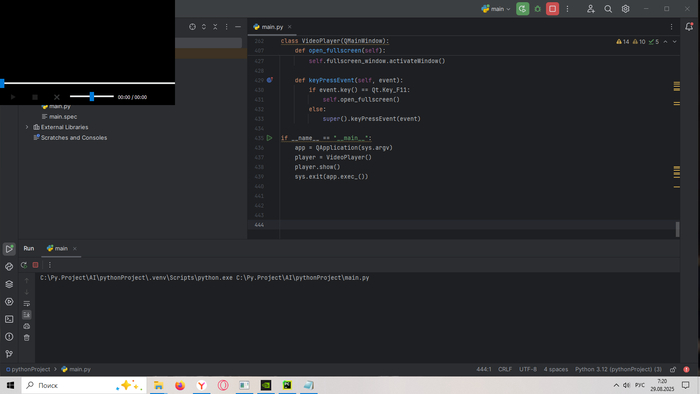 Стало интересно, как создать видеоплеер, поспрашивал DeepSeek, тот объяснил, что необходимо установить VLC плеер, для того, что бы использовать оттуда файл (libvlc.dll) в работе написанного плеера, указать путь к нему в коде. Плеер простенький, но рабочий. К сожалению попытки сделать так, что бы видео открывалось на весь экран, ни к чему не привели, можно смотреть только в окне, тем не менее, радует, что вообще работает.