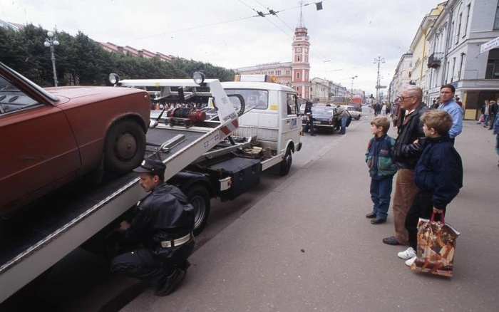 Эвакуатор на Невском проспекте. Санкт–Петербург, 1995 год.