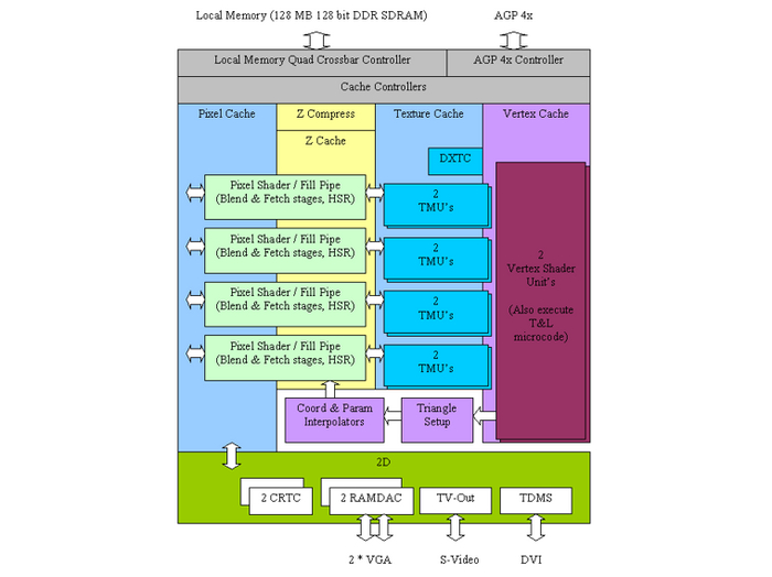 В отличие от прошлой линейки, карты серии GeForce 2 стали по-настоящему массовыми. Игры положительно откликались на удвоенное количество TMU, но производительность все чаще стала упираться в пропускную способность памяти.