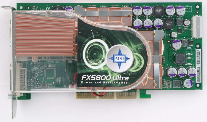 Первыми стали карты серии FX5800 на основе 130 нм чипа NV30. 4 ROP и 8 TMU соседствуют с четырьмя пиксельными и тремя вершинными шейдерами, которые переработаны для поддержки шейдерной модели 2.0a и управления потоком команд. К 128-битной шине подключалось 128 МБ памяти нового типа — GDDR2. Качество сглаживания и анизотропной фильтрации улучшилось. К тому же, они стали меньше влиять на производительность.