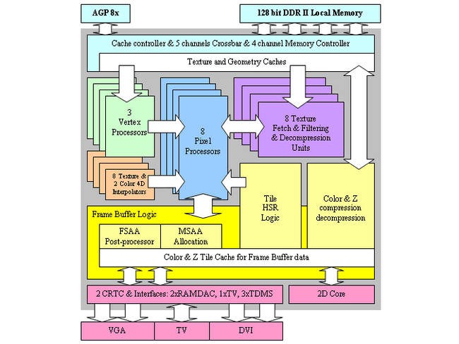 Практически каждая модель серии имела два вида: с интерфейсами AGP 8x и PCI-E x16. Мост HSI, ранее распаиваемый на плате, интегрировали на подложку ГП. AGP-варианты получали дополнительное питание через разъемы MOLEX, а для PCI-E карт стал использоваться привычный и сегодня разъем питания 6-pin.