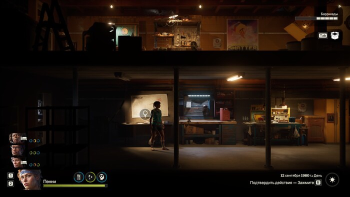 Мы начинаем днём, распределяем выживших, раздавая каждому из них поручения (например, изготовить оружие, починить баррикаду, улучшить какие-то «станки на базе», приготовить еду и т.п.), после чего нажимаем «конец хода», переходя на вторую половину суток и повторяем процесс.