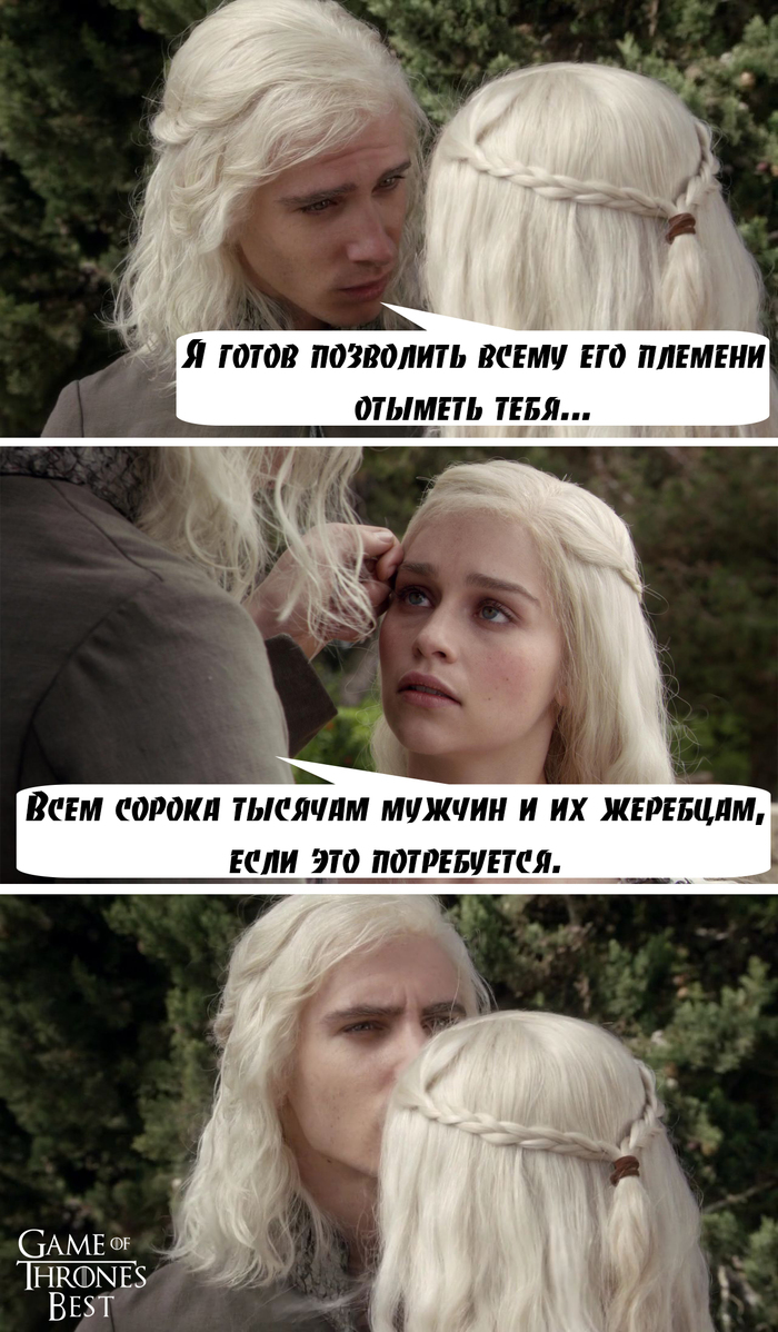 Когда Иллирио устроил свадьбу Дени и кхала Дрого, Визерис воспрял надеждой. В обмен на сестру Дрого обещал Визерису военную помощь в реставрации династии Таргариен. И хотя издревле в доме Таргариенов брат вступал в брак с сестрой, Визерис нашел необходимым поступиться древним традициям.