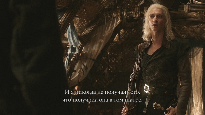 В Ваэс Дотрак Дени попыталась помириться с Визерисом, подарив ему нарядный дотракийский костюм, однако он отверг ее дары; в перепалке Дени впервые в жизни сама ударила брата по лицу.