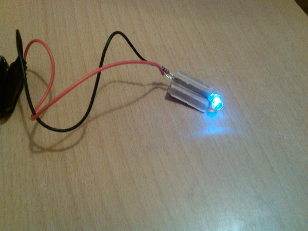 Если соединить контакты с батарейкой оно начнёт мигать!