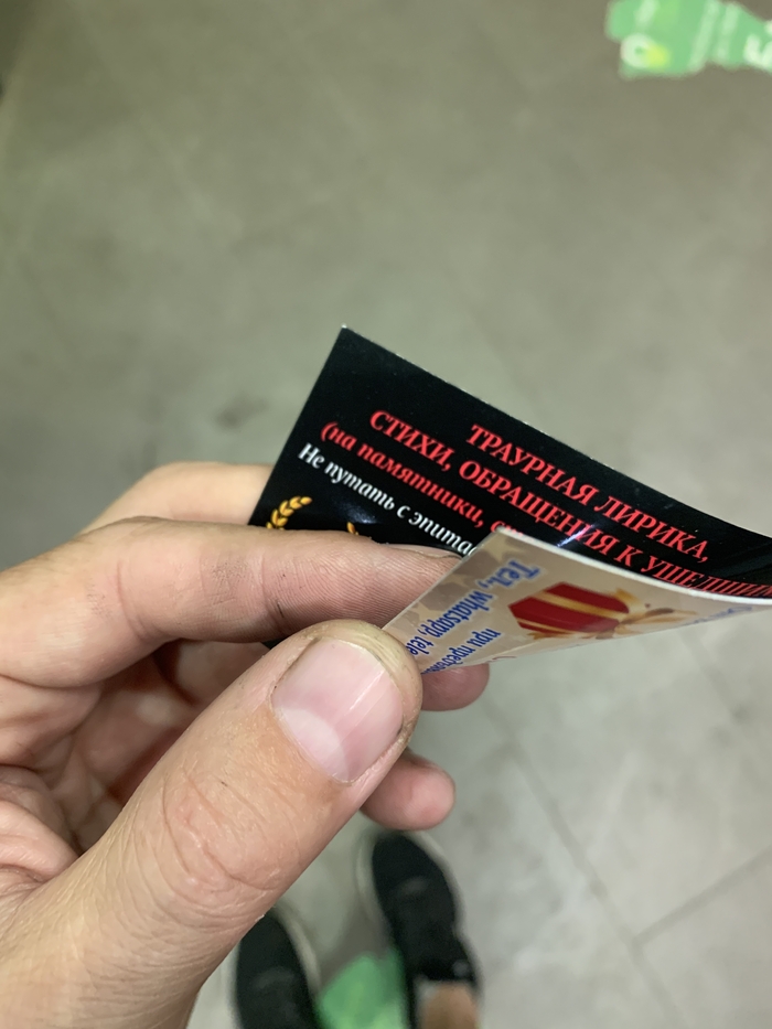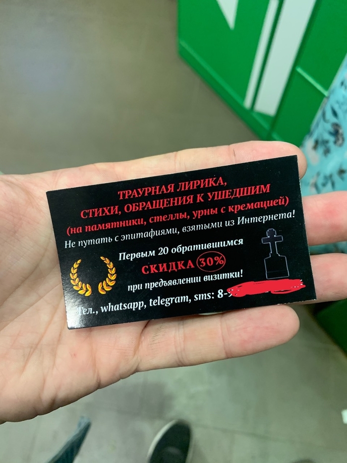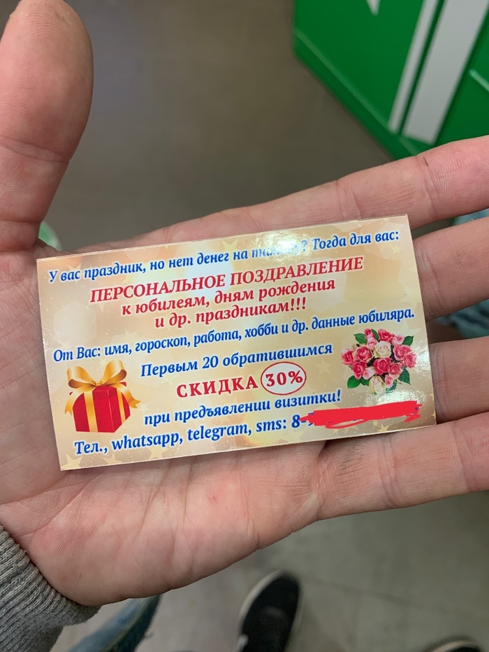 Вчера вечером на улице раздавали рекламу. Вручили и мне визитку. Сунул в карман, на свету рассмотрел. Оказалось двухсторонняя: