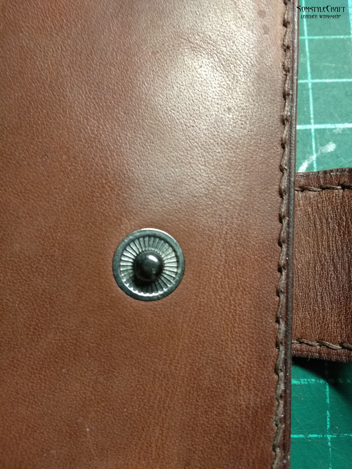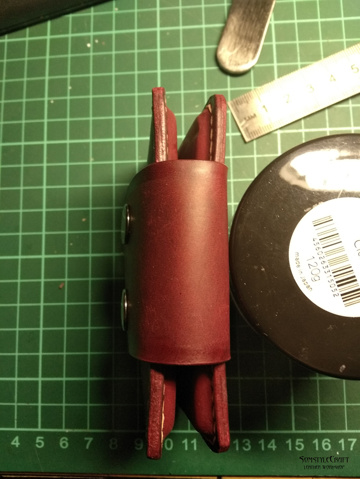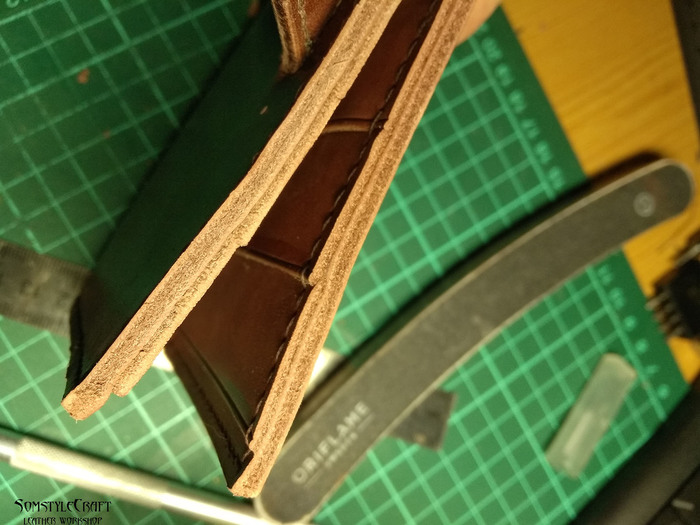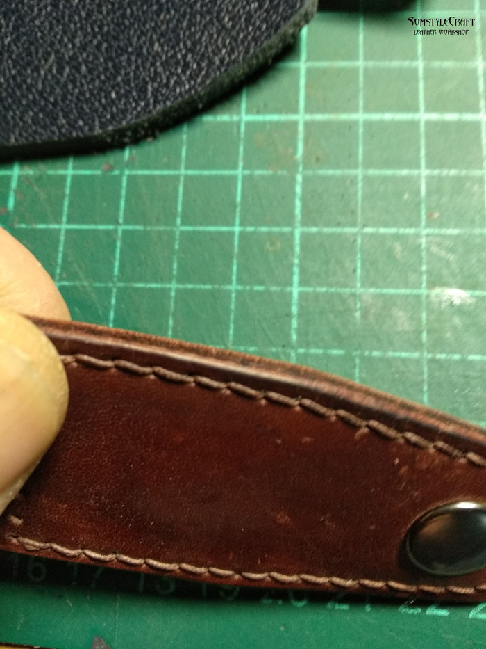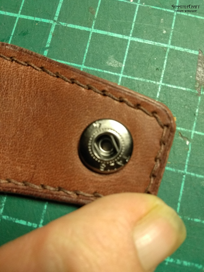-Слишком близко к краю пробил язычок и при сшивании кожа деформировалась немного, на фото видно, но в живую почти не видно. Всегда при первом сшивании вылазит какая-нибудь мелочь, второй раз шьется гораздо лучше.