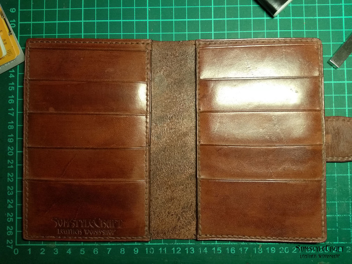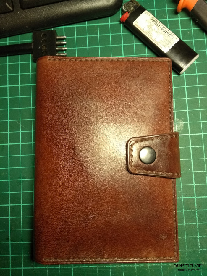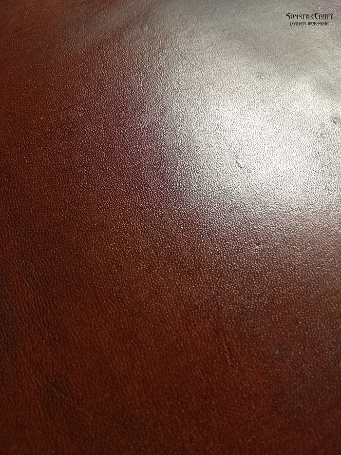 Далее я покрыл кожу маслом, цвет получился натуральным, как масло подсохнет цвет станет посветлее.