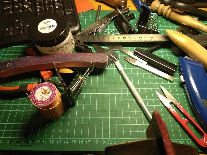 На фотографии выше практически весь инструмент, что использовался для изготовления данной визитницы.