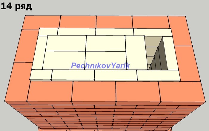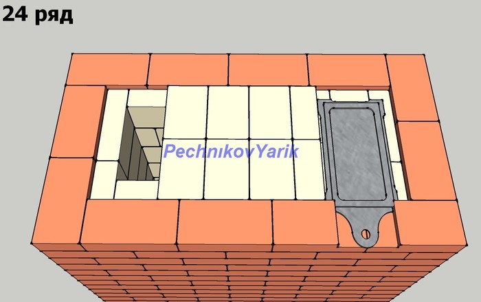Начинаем перекрывать духовку, создаем канал для регулирования духовки. Далее вырезаем кирпич и устанавливаем плиту. Плиту кладем на каолиновую вату, она выдерживает до 1300 градусов.