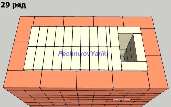 Удобно когда под рукой есть небольшое пространство, на которое можно положить инструменты для готовки. Здесь это пространство занимает небольшая полка над плитой. Так же для красоты делаем по кругу печи выступы по 30мм.