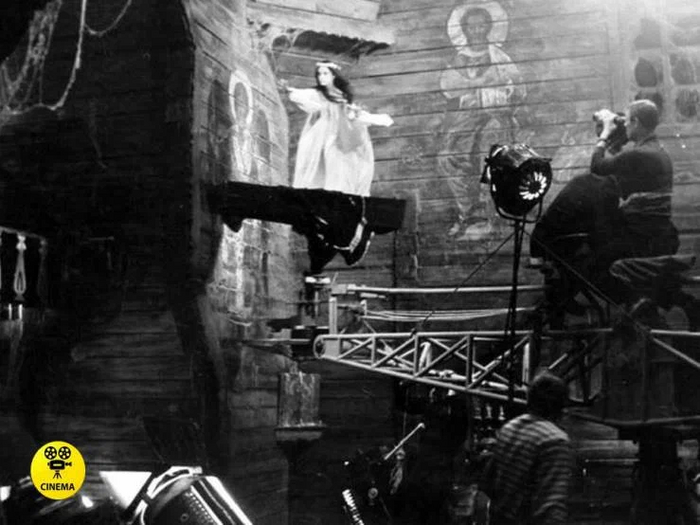Эпизод снимали больше недели, и каждый день Варлей летала в этом гробу под крышей павильона, в декорациях, которые полностью повторяли одну из старинных украинских церквей.