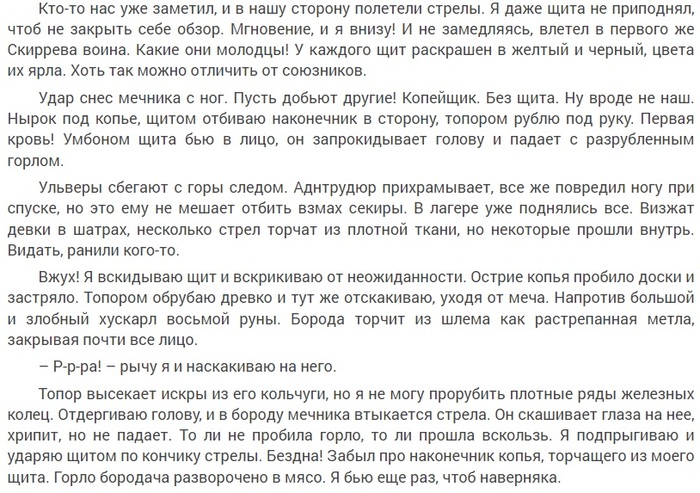 Второй проблемой лично для меня стало ухудшившееся качество текста. Да, не критично, и тем не менее, проблема наличествует. Причём я говорю отнюдь не о грамматике и пунктуации – тут всё отлично (ну, может, стоит подправить пару опечаток, но на такую ерунду не вижу смысла даже обращать внимание).