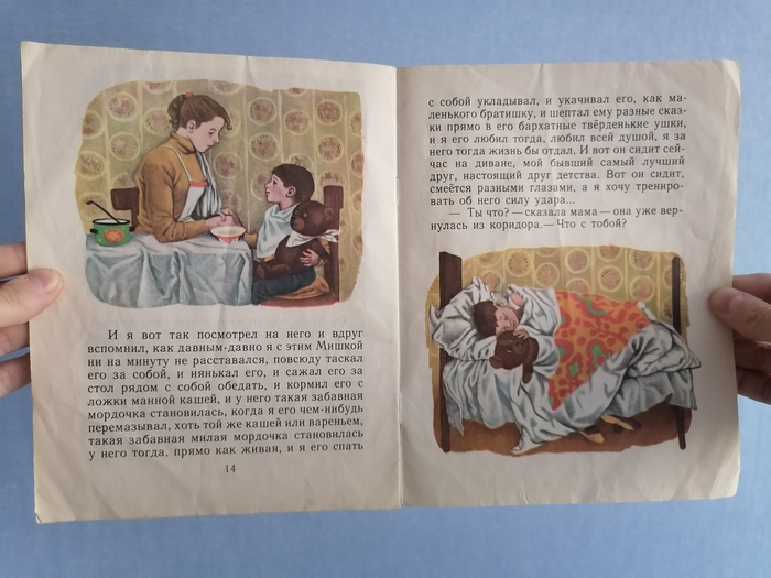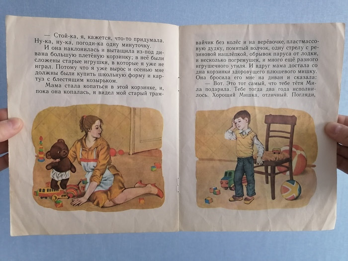 Мама стала копаться в этой корзинке, и, пока она копалась, я видел мой старый трамвайчик без колес и на веревочке, пластмассовую дудку, помятый волчок, одну стрелу с резиновой нашлепкой, обрывок паруса от лодки, и несколько погремушек, и много еще разного игрушечного утиля. И вдруг мама достала со дна корзинки здоровущего плюшевого Мишку.