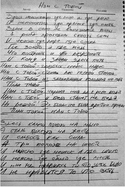 Песня «Нам с тобой» написана весной 1990 года, хотя отдельные наброски текста существовали еще в конце 1989 года. На кассете, сохранившейся у Наталии Разлоговой, уцелела акустическая версия этой песни, записанная Виктором в Москве. Есть мнения, что, она посвящена самой Наталии.