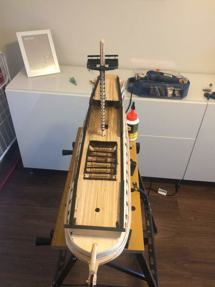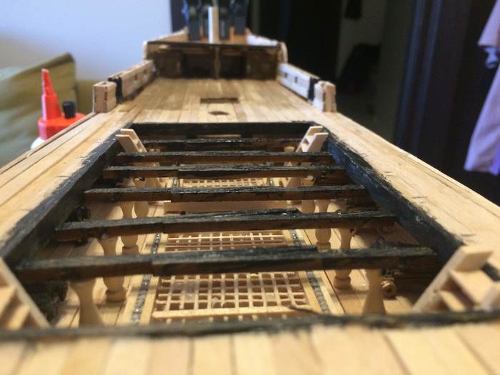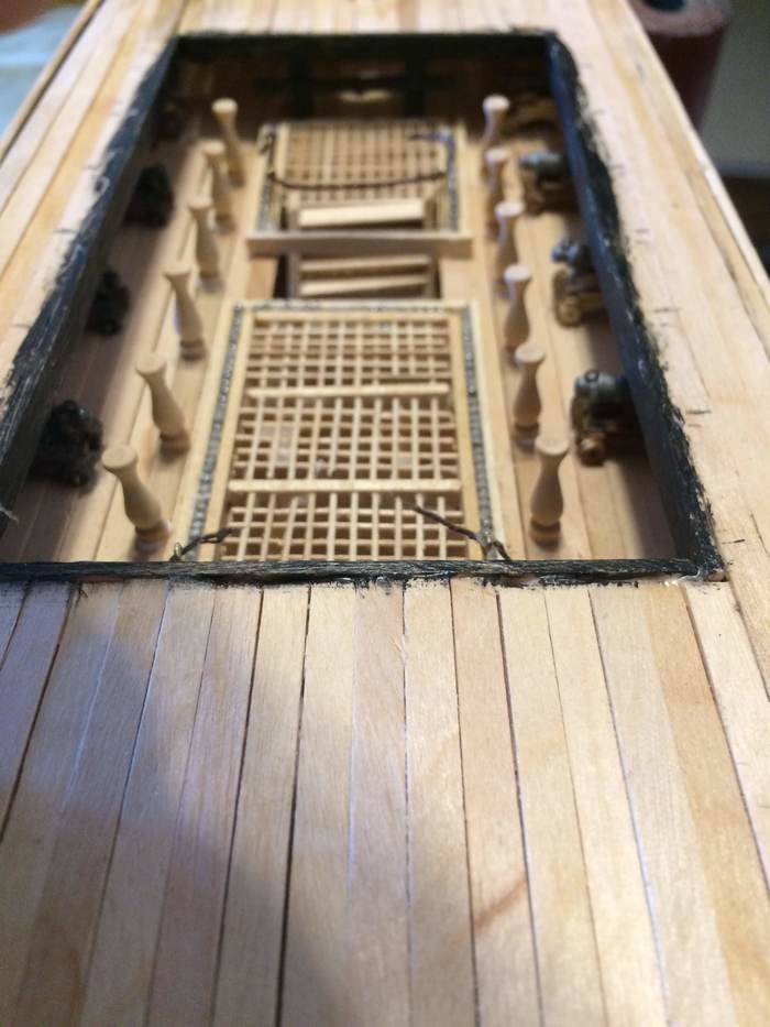 Настилаем последнюю общую палубу. Ограждения для каюты капитана.