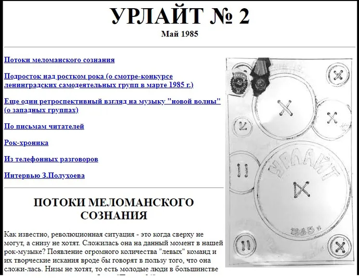 На самом деле всё немного сложнее и действительно ироничнее. Перенесёмся на 40 лет назад, благо, есть на чём - локальная копия сайта Goldenunder "Золотое подполье", наиболее полный сборник рок-самиздата СССР, у меня даже есть один настоящий журнал с того времени ;)