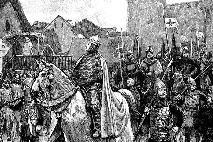 Выход всей этой энергии очень удачно дали начавшиеся позже Крестовые походы (первый в 1096 году), репетицией которых некоторые историки и считают завоевание Вильгельмом Англии. Как и в Крестовых походах, в завоевании Англии участвовали рыцари со всей Европы - собственно нормандский контингент составлял менее половины сил Вильгельма. Как и Крестовые походы это была морская экспедиция. Завоевание Англии даже было объявлено “священной войной”, о чем позже. Ну и вообще в первый Крестовый поход ходили дети и внуки тех, кто в свое время отправился завоевывать Англию.