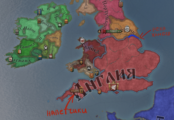 Плюс в отличие от континентальной Европы, в Англии к тому времени почти не строили замков, в то время как Франция, например, была вся ими утыкана. И наконец, постоянного флота у Англии к тому моменту не было совсем. 24 года правления Эдуарда были достаточно спокойными, викинги занятые разборками в Скандинавии не нападали, и флот распустили. Англичане вообще удивительно долго пренебрегали флотом и такая очевидная для нас вещь как регулярный английский флот вообще появится достаточно поздно - только в конце пятнадцатого века, после войны Алой и Белой розы.