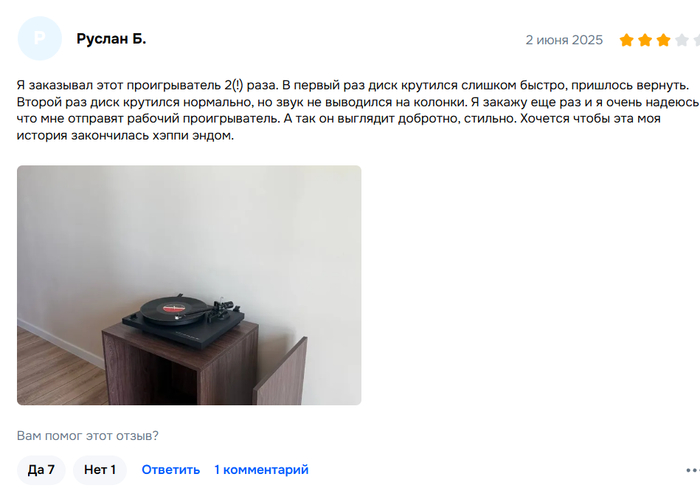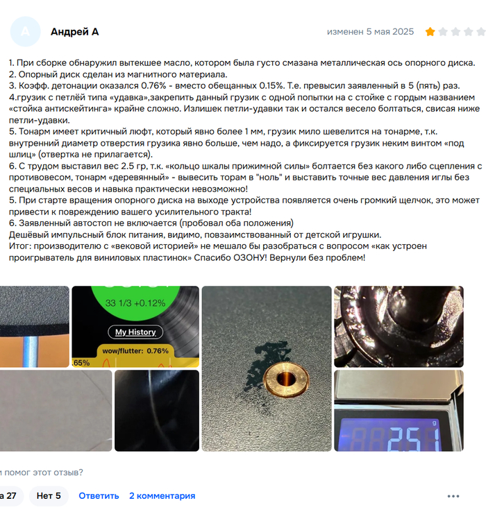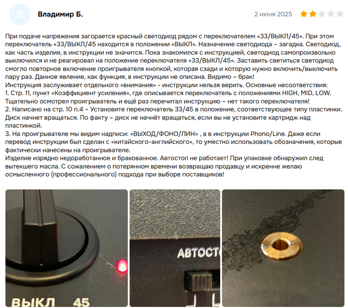 Я верю, что современные двигатели малошумящие, но для чувствительного звукоснимателя даже самый тихий шум или вибрация катастрофа! Ну и у проигрывателя нет регулировки горизонтальности. Стало интересно, какие впечатления у счастливых обладателей отечественных проигрывателей.
