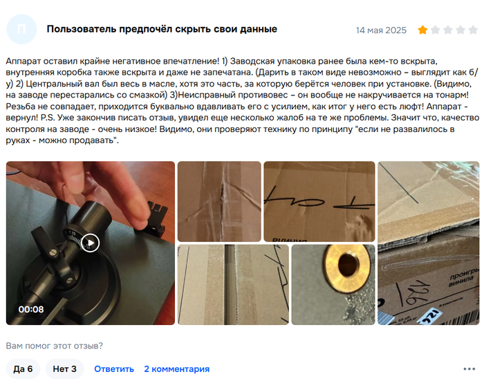 У продавца на маркете, под страничкой товара, был только один положительный отзыв. Нас на такую уловку не возьмешь, знаем как появляются такие отзывы, поэтому я отправился читать отзывы на других сайтах. Вот тут и раскрылась истинная картина.