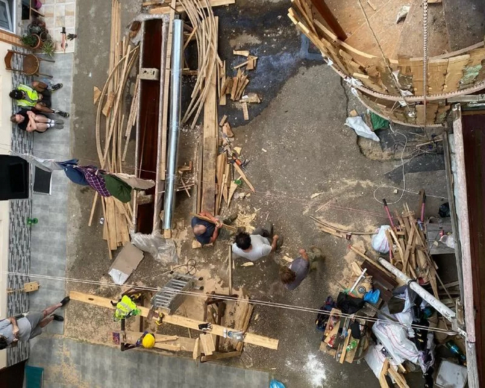Самым сложным было восстановить главную ось — авторы проекта решили ее обязательно сохранить. В итоге во дворе поставили токарный станок и прямо на месте заменяли новым деревом сгнившие части.В течение года участники проекта собирали лестницу заново, как пазл, и теперь она снова на своем месте.